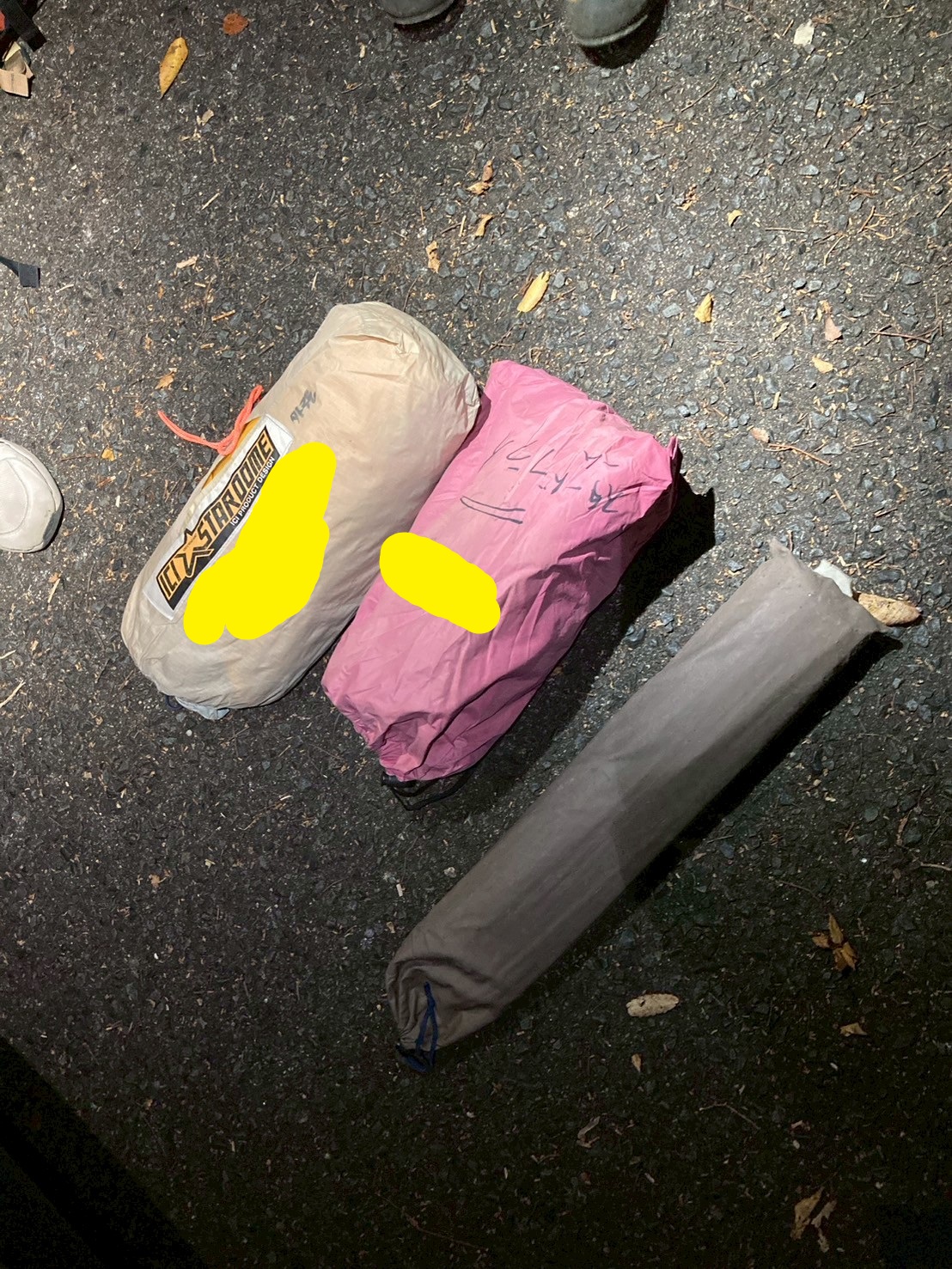 23時頃に御在所のある四日市付近の某所に到着。テントを設営しようとしすると、なんとっ。