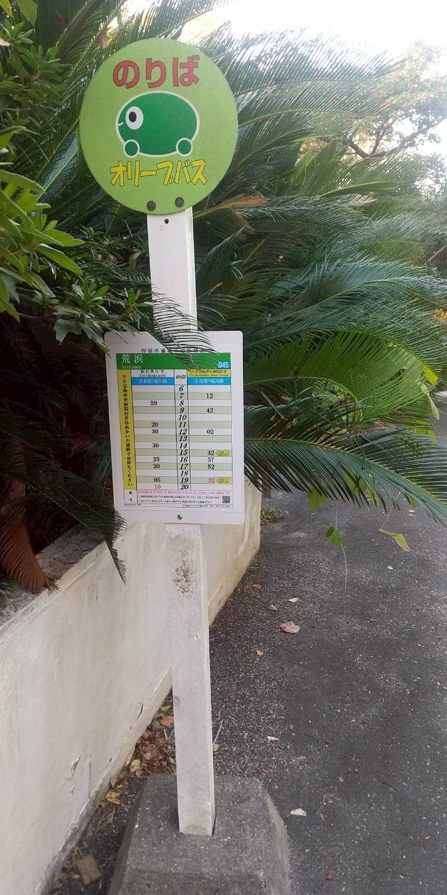 駐車スペースから少し福田港に向かって歩くと「荒浜」のバス停がある。廃墟(2025年12月時点)の目の前。