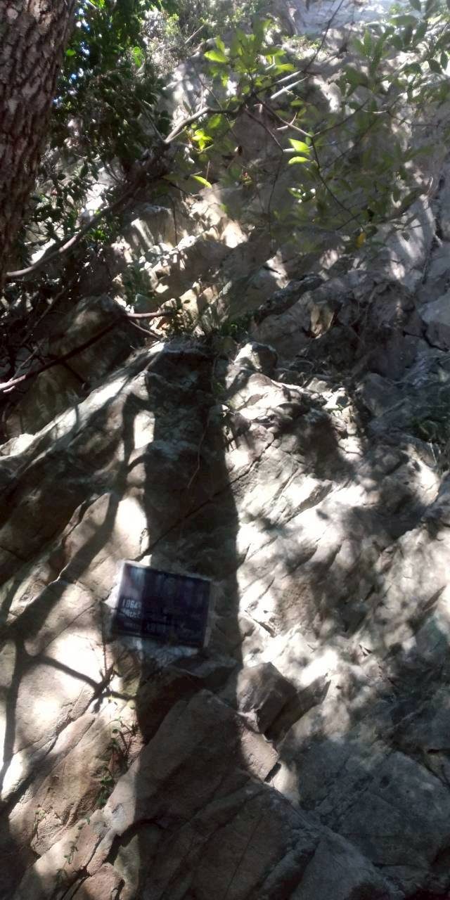 上記地図の赤矢印部分は下の写真の部分。「拇指岩」と表示されている。