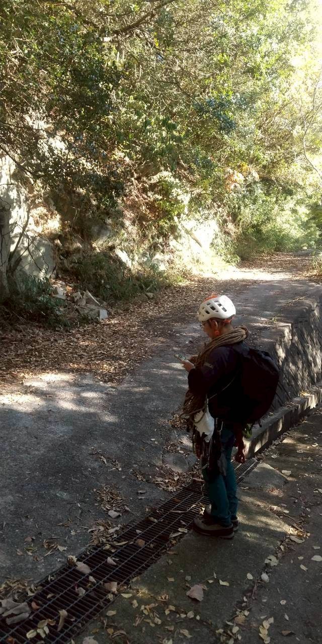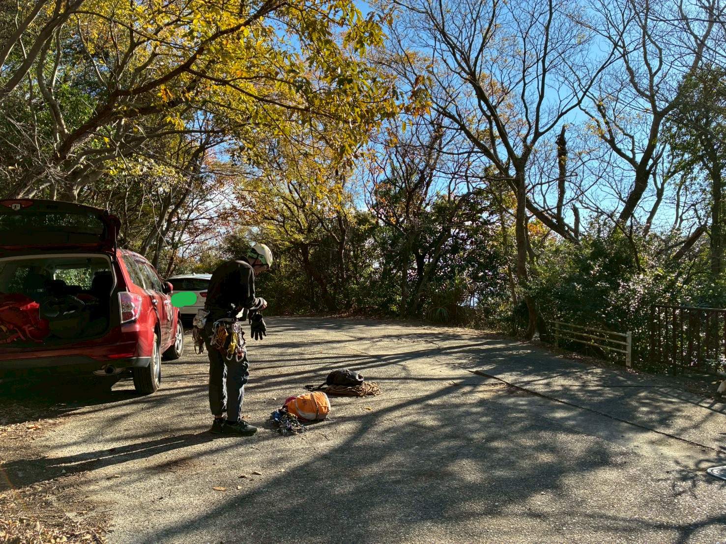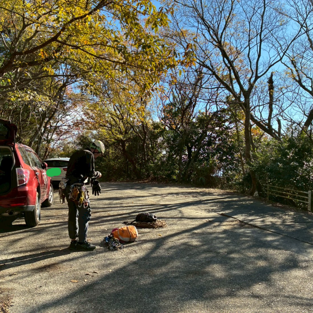 10:00駐車スペースよりスタート、11:00に取り付きにて登攀開始、終了点14:30到着、15:30駐車スペース到着。