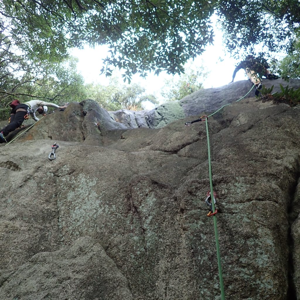 しかーし、やっぱりムズイ・・・私は小豆島物語の離陸ができず、何度もトライするも・・・ヌンチャク回収の使命のもと、トップロープで自分の好きな所を登って、なんとか回収。