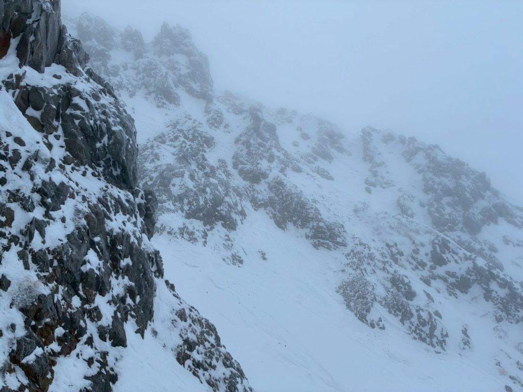 はいドーン!!!真っ白!一日中絶妙に悪い天気での登攀となりました。
